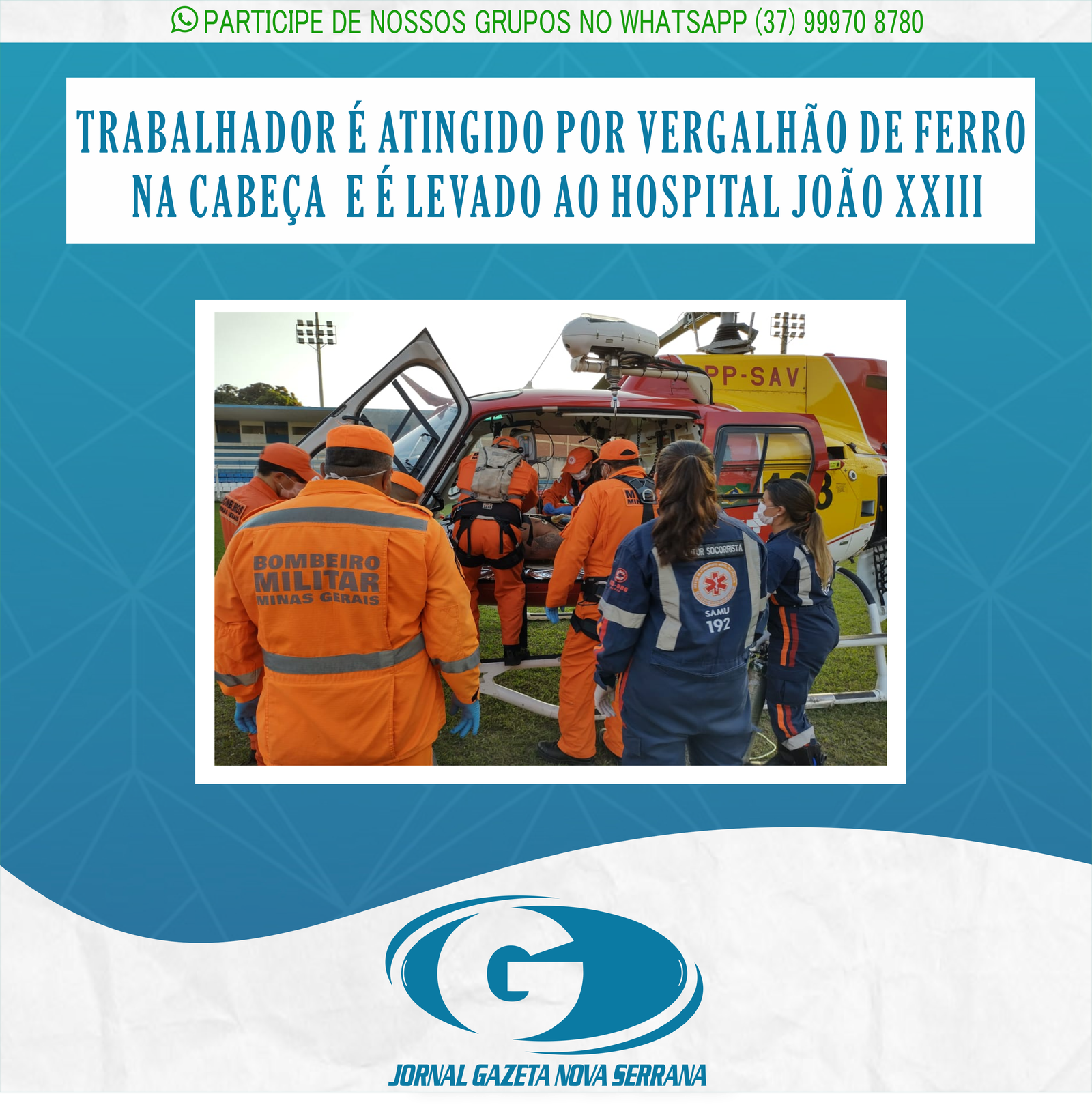 Um homem de 33 anos foi atingido por um vergalhão de ferro na cabeça em Pará de Minas. O acidente de trabalho foi registrado na tarde desta segunda-feira (18), em uma obra na Rua Ubirajara Campos de Almeida, no Bairro São Luiz.