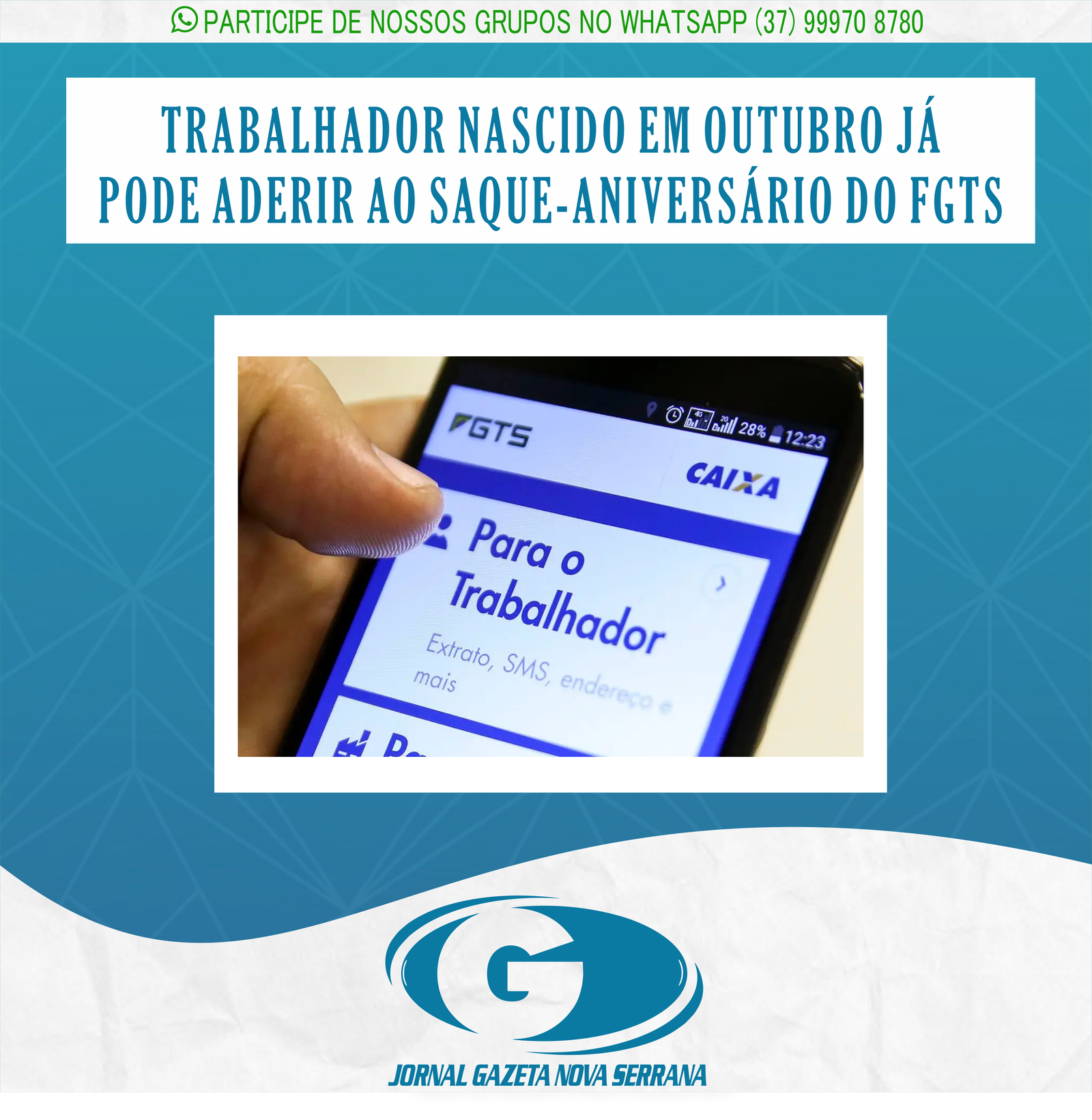 Trabalhadores nascidos em outubro e que têm saldo nas contas vinculadas do Fundo de Garantia do Tempo de Serviço (FGTS) podem retirar a parcela anual do saque-aniversário a partir desta segunda-feira (3).