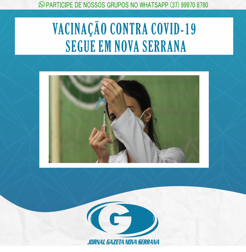 A campanha de vacinação contra a Covid-19 da Secretaria de Saúde da Prefeitura de Nova Serrana continua. A aplicação de vacinas é realizada diariamente no PSF José Eustáquio de 8h às 15h30.