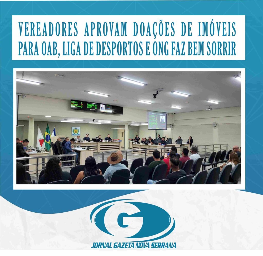 Os vereadores da Câmara Municipal de Nova Serrana aprovaram durante a 26ª reunião ordinária, realizada nesta terça-feira (22/08), os Projetos de Lei nºs 077, 078 e 080 de 2023, que tratam sobre a doação de imóveis a associações e instituições que desenvolvem atividades de interesse público em Nova Serrana.