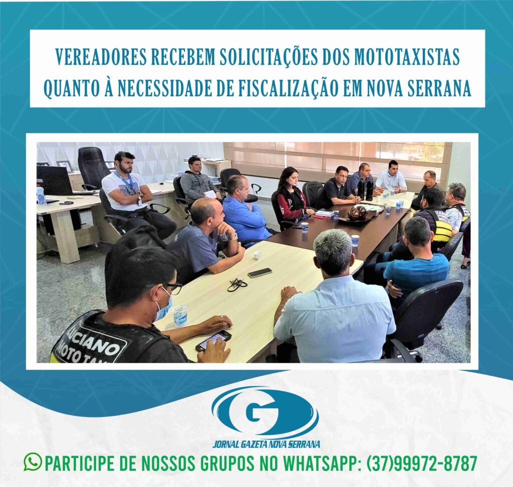 Os vereadores da Câmara Municipal de Nova Serrana se reuniram na quarta (21) para tratar sobre algumas solicitações dos mototaxistas que estão tendo dificuldades no trabalho, em razão de pessoas trabalhando no transporte de passageiros irregularmente, sem cadastro e em pontos muito próximos dos legalizados.